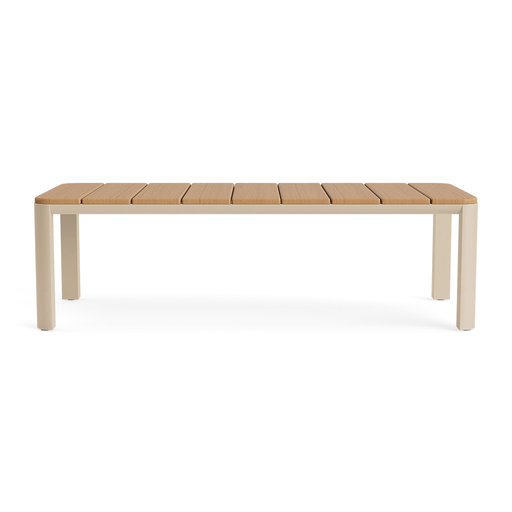 The Solenne 42" x 96" Dining Table embodies architectural clarity with a bold sculptural presence. A slatted teak top introduces warmth and rhythm, balanced by a powder-coated aluminum base that echoes the collection’s softened geometry. Proportioned for both intimate gatherings and refined entertaining, it serves as a striking anchor for outdoor dining with strength, artistry, and enduring elegance.