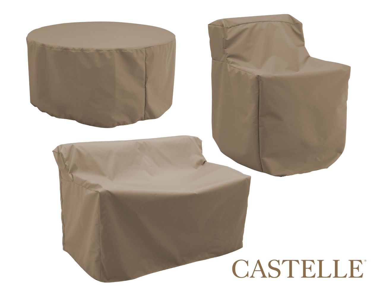 Castelle® Tangent covers offer durable protection to your outdoor patio furniture year-round. When your furniture is covered with high quality protection, the beauty of the frame, finish, and fabric are preserved. Each of our durable covers are designed with polyester fabric that is easy to maintain, lightweight, UV resistant, and water resistant so your furniture is securely protected. The use of Tangent furniture covers guarantees a snug fit to protect your investment and each cover is customized to fit all styles and models. Our furniture covers are engineered to resist the elements of harmful external weather conditions and each high-quality cover allows air to circulate over the frame. As a bonus, sewn loops in each corner are included for added security and stability under windy conditions. Each Tangent cover is available in Tangent Hemp (a) fabric color.